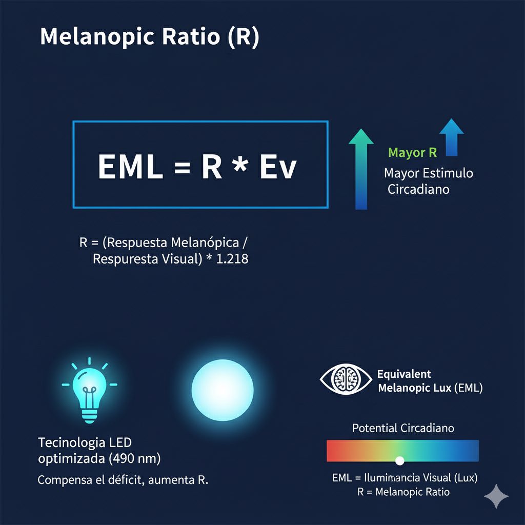 El EML permite comparar la eficacia circadiana de diferentes fuentes de luz, ya que mide la intensidad del estímulo biológico en relación con la iluminación visual tradicional.