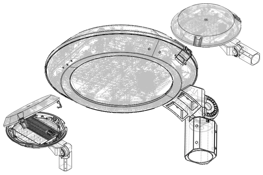 La instalación se puede realizar tanto en columna como en báculo con brazo gracias a la rótula de instalación orientable.