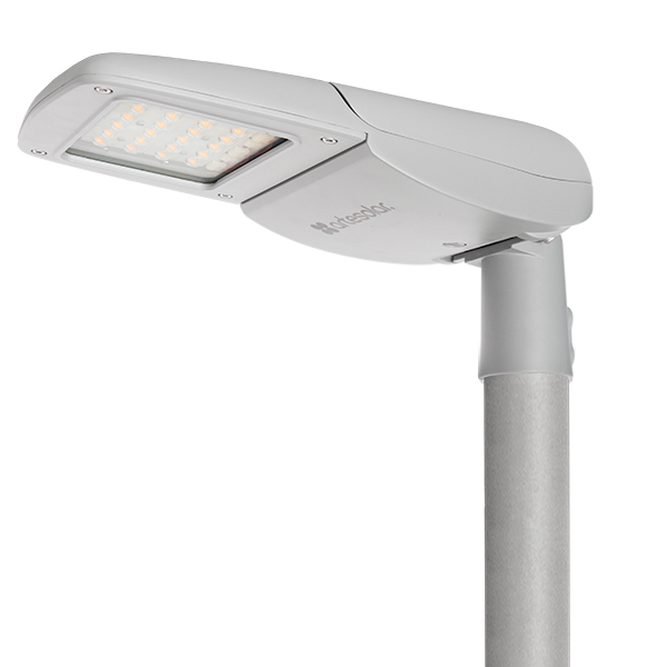 Fijación universal, post-top o lateral a brazo ø60mm. El acoplamiento de la luminaria incluye rótula graduada para fijar el ángulo de inclinación definido en el proyecto