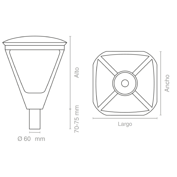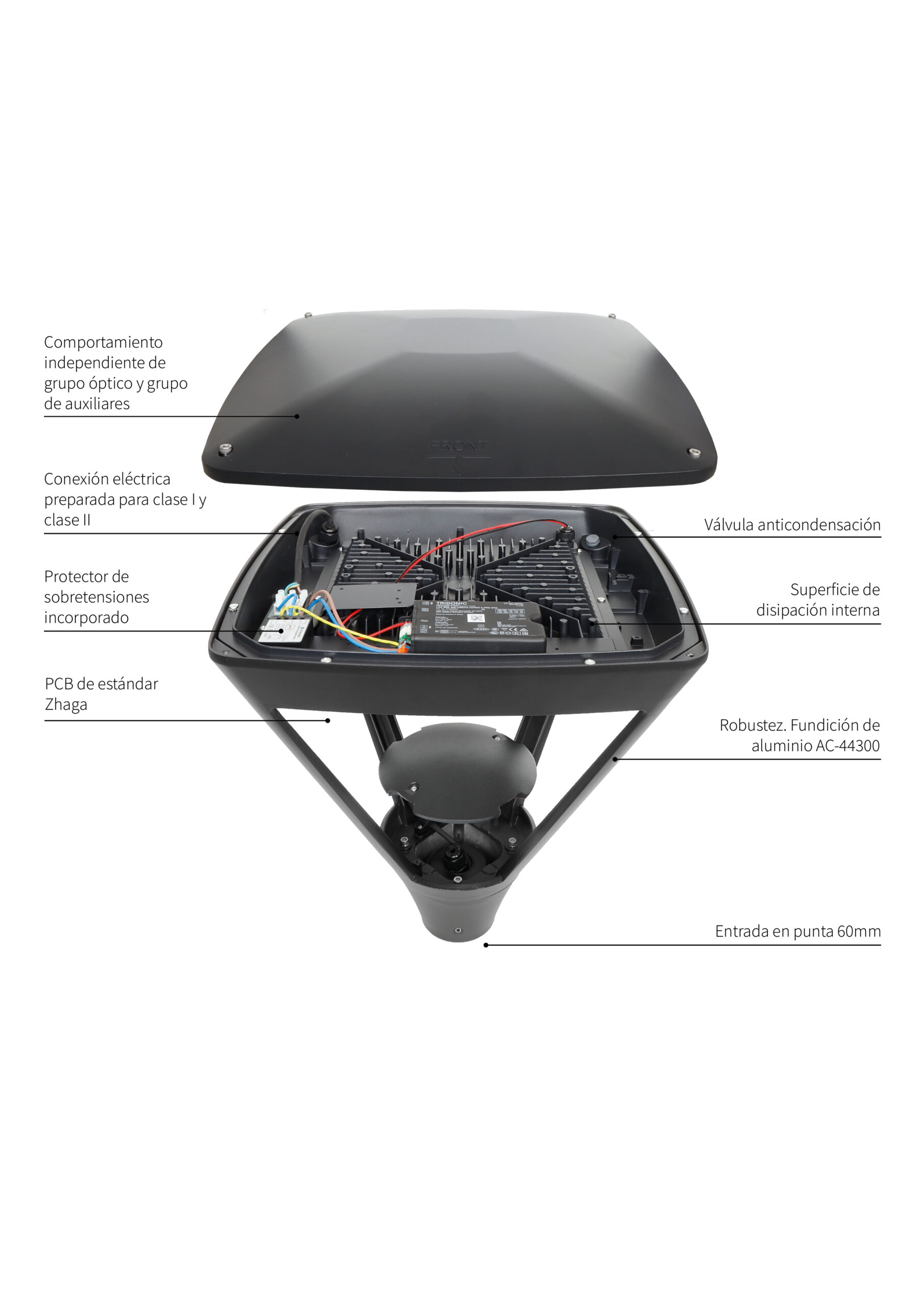 La luminaria GALA es una reinterpretación contemporánea de los faroles clásicos, diseñada para embellecer y proporcionar seguridad en entornos rurales y urbanos. Su estructura robusta de aluminio AC-44300 y su diseño antivandálico la hacen ideal para espacios públicos, mientras que su tecnología de iluminación avanzada garantiza una luz eficiente y atractiva.