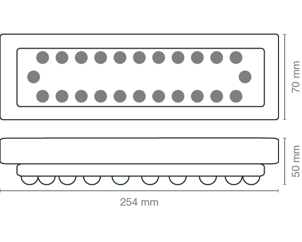 Lente continua de policarbonato con índice de protección IK10 que asegura el mantenimiento y durabilidad de los LEDs.